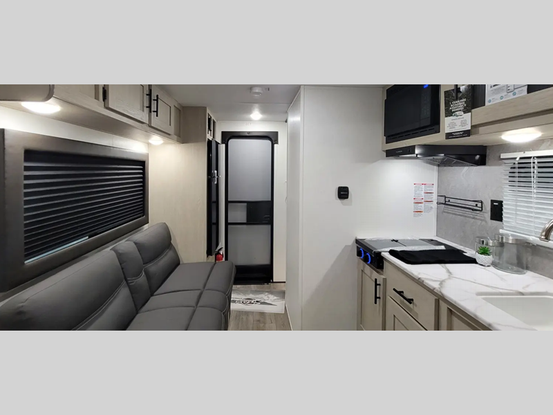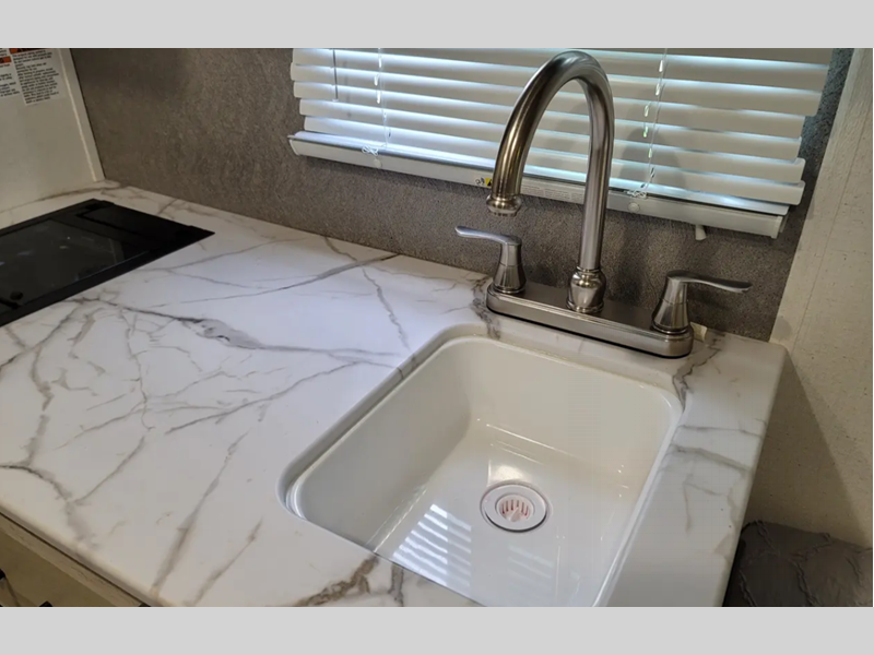 Each model includes four stabilizer jacks that will help secure your unit once you've made to the campground, and you might even want to add the optional power tongue jack in place of the manual jack for even more convenience. Inside, the seamless countertops will be easy to keep clean and the Bluetooth portable speaker will let you take your tunes with you!