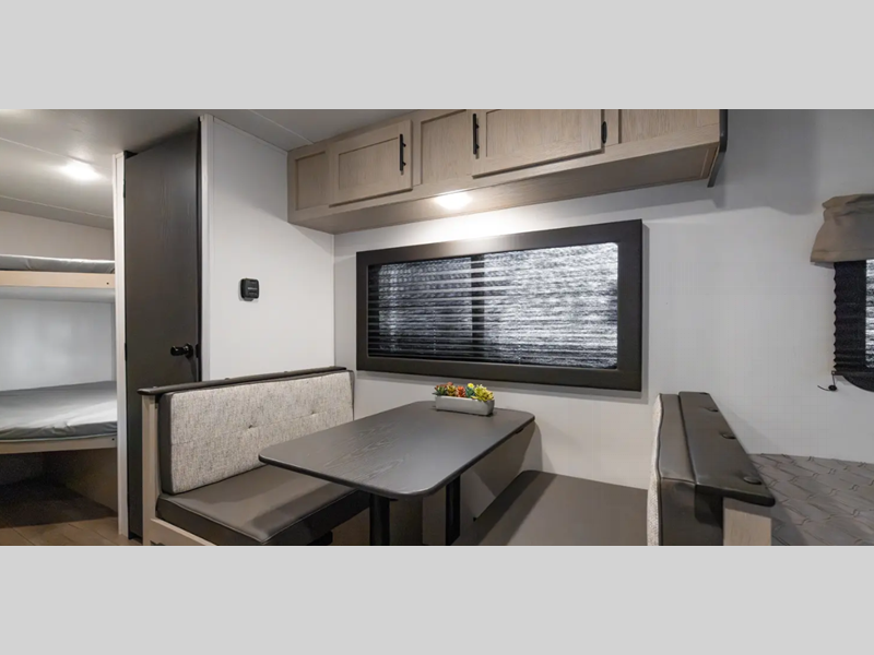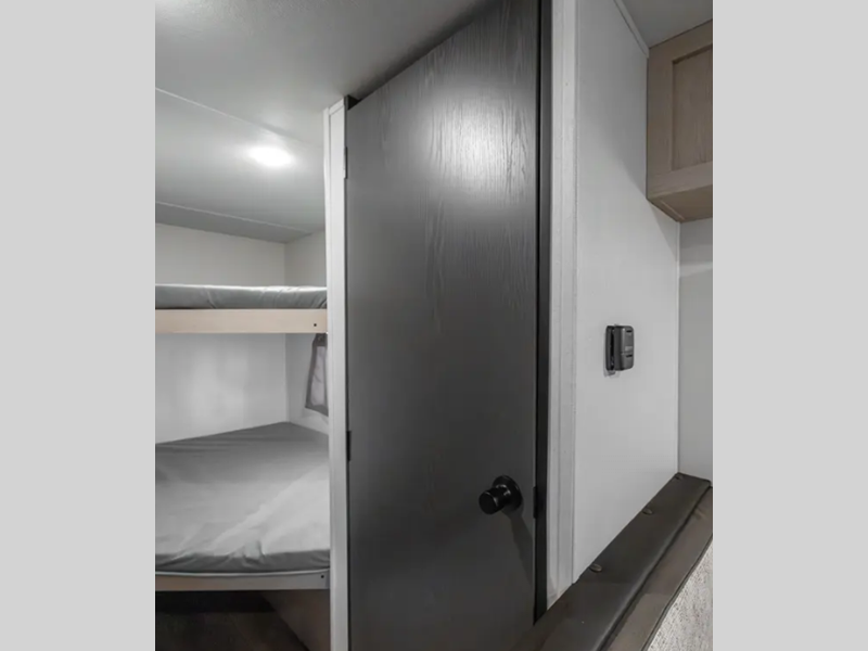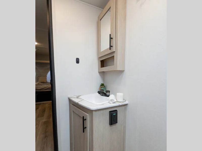 Each model includes four stabilizer jacks that will help secure your unit once you've made to the campground, and you might even want to add the optional power tongue jack in place of the manual jack for even more convenience. Inside, the pocket-bored and screwed cabinets add comfort and durability for everyday use, and the Bluetooth portable speaker will let you take your tunes with you!